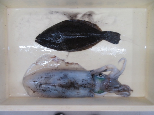 本日白島フェリー乗り場にてアオリイカとヒラメのお持ち込み!