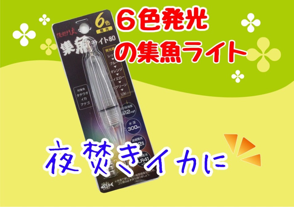 投稿日: 4月 28, 2021 投稿者: 若松響灘店【おすすめ】夜焚きイカに!「集魚ライト80」 みなさま、こんにちは(^O^)/!! 若松響灘店です☘☘ 本日のおすすめ商品はこちらです!(^^)! 伝衛門丸「集魚ライト80」 6色発光 発光順は レッド➡ブルー➡オレンジ➡イエロー➡グリーン➡UV これで、イカに好かれますよ~(#^.^#) 是非お試し下さい(^O^)/!! 若松響灘店毎朝4時開店していま~す!! 🌟❤💚💛💙🌟 若松響灘店のLINEお友だちになってください。 ぽっちとお願い致しまする~♪