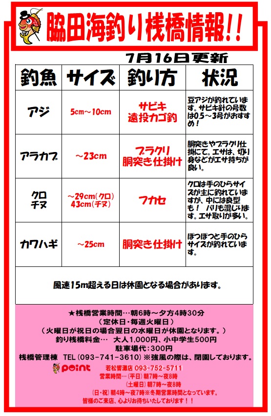 脇田海釣り桟橋 釣果(7/14)➡ ここをクリック!