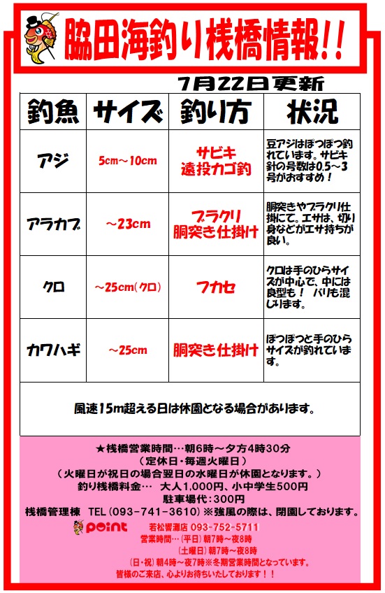 脇田海釣り桟橋 釣果(7/21)➡ ここをクリック!