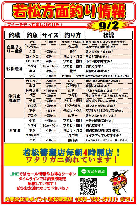【釣果情報】9/2★若松釣果情報★