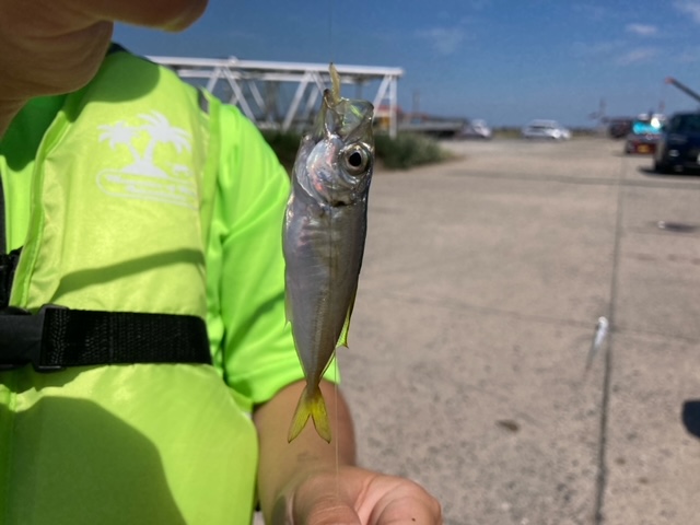 ご家族で釣りに来ていた男の子のサビキにもいっぱい豆アジが掛かっていました!