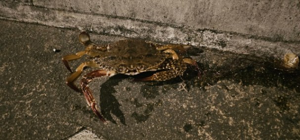 さて、少し前になりますが若松方面へ夜のカニ調査!