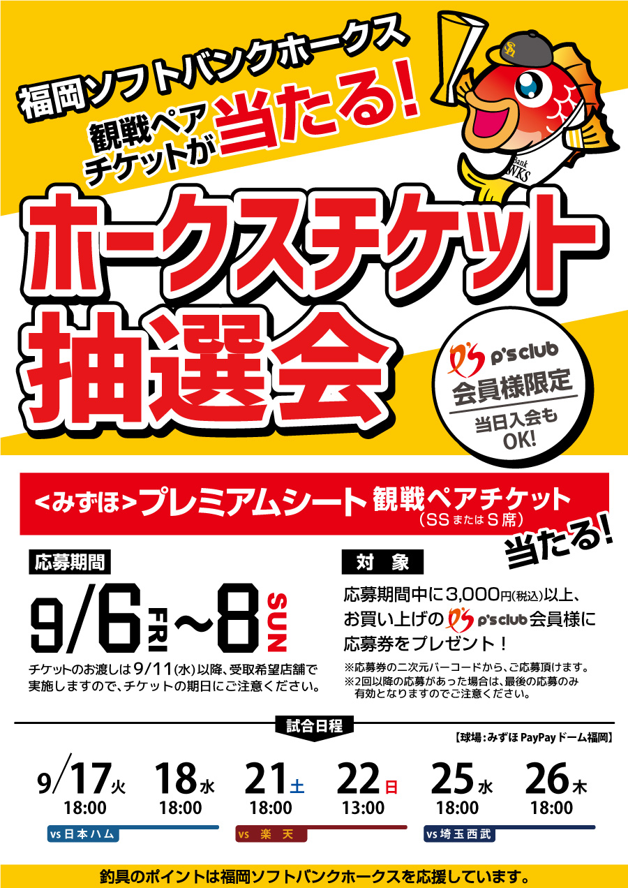 釣具のポイントは福岡ソフトバンクホークスを応援しています。